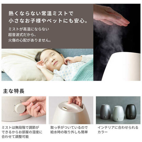 熱くならない常温のミストで加湿するため、火傷の心配がありません。