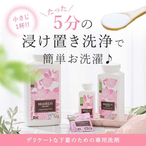ブラデリスでは、補整力の低下や生地の劣化を防ぐために、下着は専用の洗剤でのお手入れをおすすめしています。