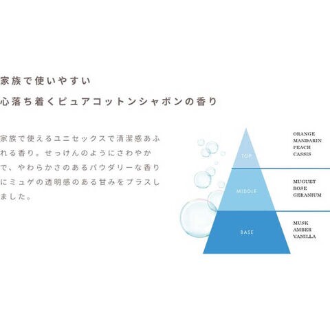 せっけんのようにやさしく爽やかなピュアコットンシャボンの香り。