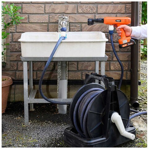 2.ホースに取付:お手持ちのホースリールに繋いで使えます。
