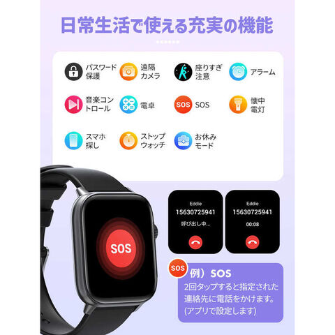 ファミリー・ライフ ファミラ 通話・SOS機能付き大画面スマートウォッチ ACアダプター付き a31230