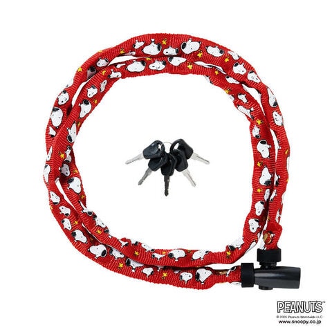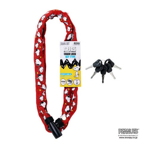 PEANUTS チェーンロック(スヌーピー、キータイプ1200mm)レッド PCLK1200-003