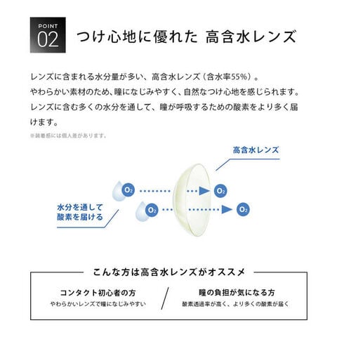 レンズに含まれる水分量が多い、高含水レンズ(含水率55%)