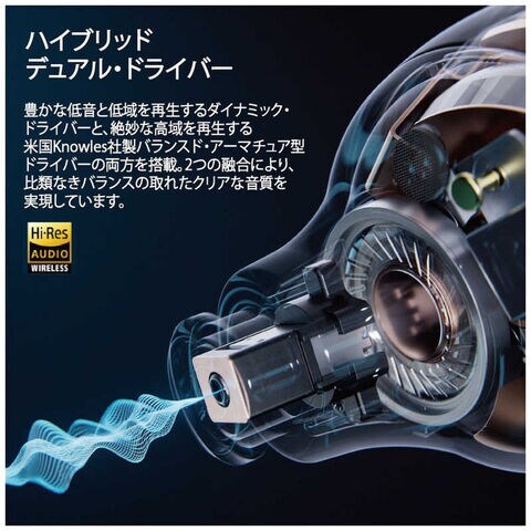 豊かな低域を再生するダイナミック・ドライバーと、絶妙な高域を再生する米国Knowles社製バランスド・アーマチュア型ドライバーの両方を搭載。