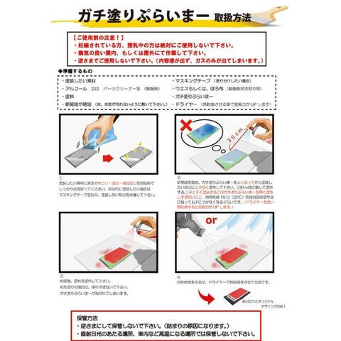 あらゆる素材に対応!ガチ塗りをひと吹きで簡単塗装!常温(20℃)15分で上塗り可能!上塗り塗料との相性も良く、塗料選びも好きな色を選ぶだけ。