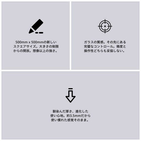 布製マウスパッドと同じ約305mmという厚みで初めて手にした瞬間から自然に使いこなせます。