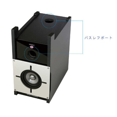 正面と底面に2つのバスレフポートを装備する大変珍しい使用になっています。このバスレフポートの開放と閉鎖により新たな「物理的音質チューニング」を実現します。