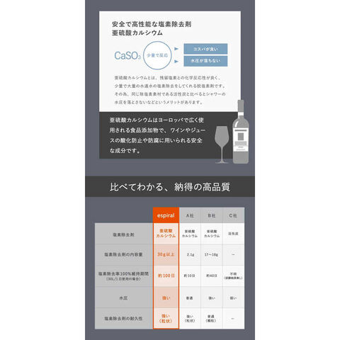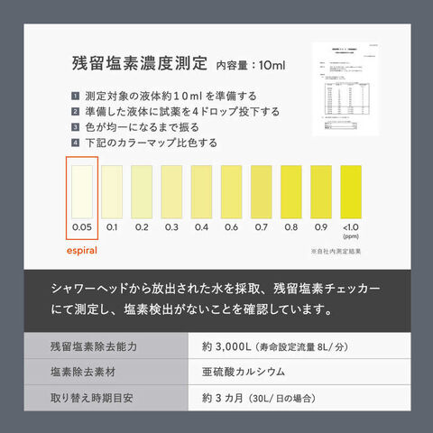 シャワーヘッド espiral( エスパイラル)の 専用 塩素除去カートリッジ お得な3本セット