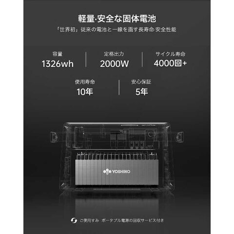 ●YOSHINOの固体電池によって高性能かつ圧倒的安全性を実現。