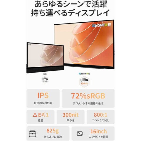 EHOMEWEI USB-C接続 PCモニター [ 16型 / WUXGA(1920×1200) / ワイド ] SP-160NF