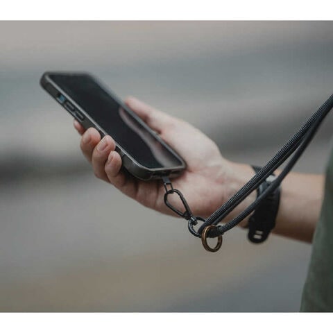 スマートフォンを首や肩に掛けて携帯できる、スタイリッシュなストラップ。