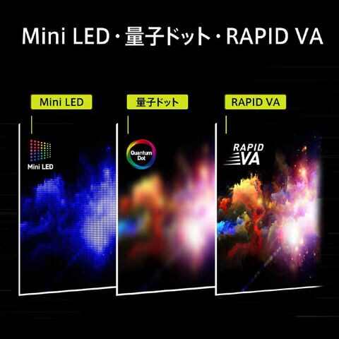 ●1152エリアに分割されることで、細かく明るさを制御でき、RAPID VAパネルを搭載することで従来よりも高速で残像感の少ない映像を体験できます。