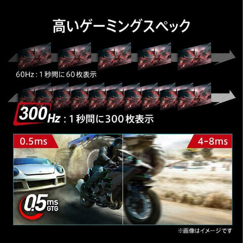 ●最大300Hz駆動を誇り、動きの速いシーンでも残像感が少なく、滑らかな映像表示が可能です。