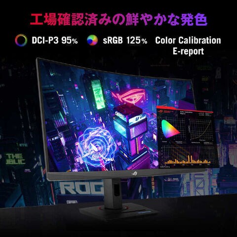 仕様1:[ディスプレイ] 曲率:1500R アスペクト比:16:9 色域(DCI-P3):95% 色空間 (sRGB):125% 表示領域 (H x V):597.736 (H) x 335.664 (V) 画素ピッチ:0.233mm 表示色:16.7M フリッカーフリー技術:○ HDR (ハイダイナミックレンジ) サポート:HDR10[電圧]100-240V、50/60Hz