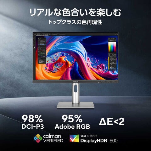 ProArt Display PA32QCVは、プロのコンテンツクリエイターに適した31.5インチ6K HDRモニターです。Calman認証を取得し、DCI-P3カバー率98%、Delta E●MacBookでの作業におすすめのモニター