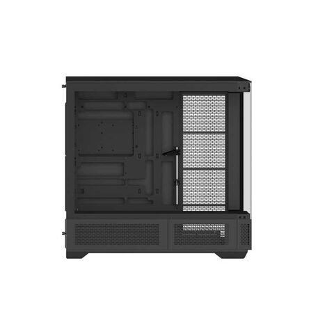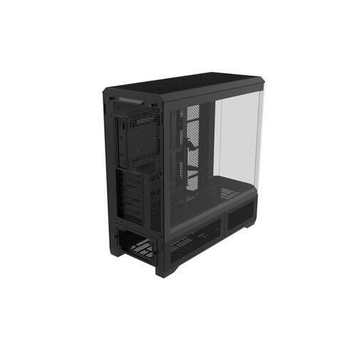 4枚の強化ガラスパネルを採用したピラーレスデザイン。背面コネクタ設計のマザーボードに対応したフルタワー型PCケース