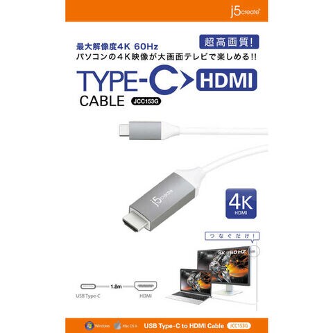 J5 USB-C ⇔ HDMI ケーブル [映像 /1.8m /4K対応] スペースグレー JCC153G
