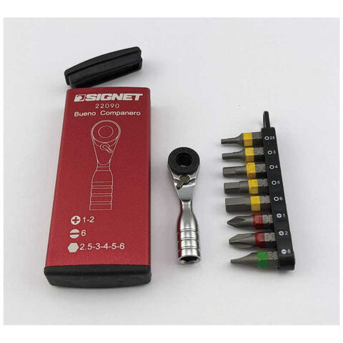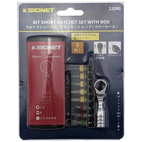 SIGNET 8個組 1/4DR ビット・52ギアウルトラショートミニラチェセット 工具ケースレッド付 22090