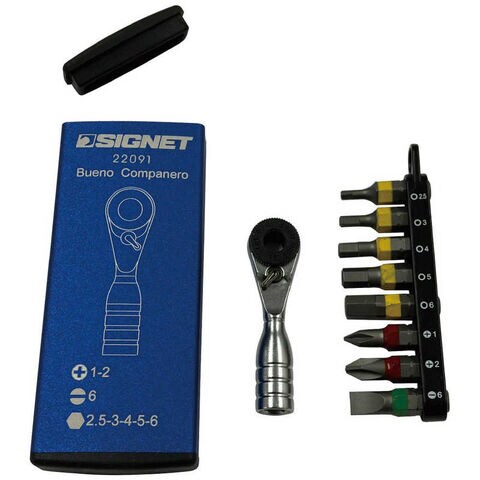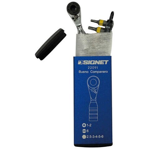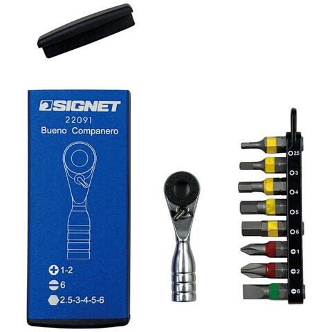 SIGNET 8個組 1/4DRビット・52ギアウルトラショートミニラチェセット 工具ケースブルー付 22091