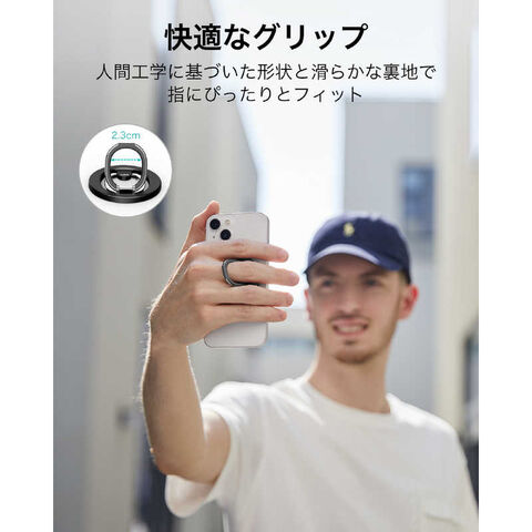 ESR マグネット式スマホリング Black HaloLockRingStand