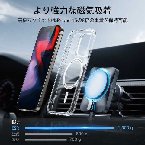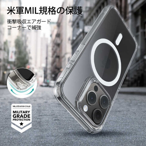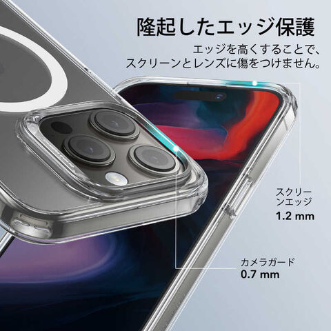 (対応機種)iPhone 15 Pro専用です。スピーカーとポートに対応した精確なカット加工と、押しやすいボタン設計により、機能性がしっかり保たれます。(より強力な磁気吸着)1,500 gの吸着力を持つ強力な内蔵磁石により、素早く簡単にワンタッチでワイヤレス充電が可能で、MagSafeアクセサリーを確実に吸着します。(米軍MIL規格の保護)厳密なテストにより、iPhoneが全面的に保護されることを実証しました。衝撃吸収エアガードコーナーにより、スマホを衝撃からしっかり保護します。(隆起したエッジ保護)隆起した画面エッジとカメラガードレンズフレームにより、保護性が強化され、大事な部分を傷から保護します。(オリジナルをキープ)傷に強く、透明度の高いアクリル製の背面により、iPhone 15 Proの本来のスタイルを、驚くほど鮮明に保ちます。