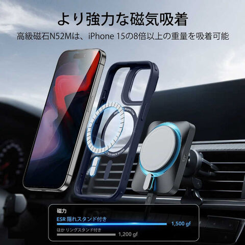 (対応機種)iPhone 15 Pro Max専用です。カメラレンズフィルムや内蔵カメラレンズフィルムは含まれません。(より強力な磁気吸着)1,500 gの吸着力を持つ強力な内蔵磁石により、素早く簡単にワンタッチでワイヤレス充電が可能で、MagSafeアクセサリーを確実に吸着します。(調節可能な隠れスタンド)折りたたんだときにカメラのフレームに隠れるように配置され、MagSafeリングを100%妨げず、いつでもどこでも自由に調整でき、安定した角度で動画を視聴できます。(長持ち設計)頑丈で耐久性のある亜鉛合金により、いつでも新品のような輝きを維持。ヒンジは3,000 回以上の使用後も強度が維持されること実験済み。(米軍MIL規格の保護)衝撃吸収エアガードコーナーと隆起したスクリーンエッジ、カメラガードの組み合わせにより、落下、衝突、傷から保護します。