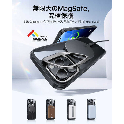 ESR iPhone 16 Pro Max(6.9インチ)スタンド付ハイブリッドケース Clear Black Clear Black ClassicHybridCaseStashStandforiPhone16ProMax
