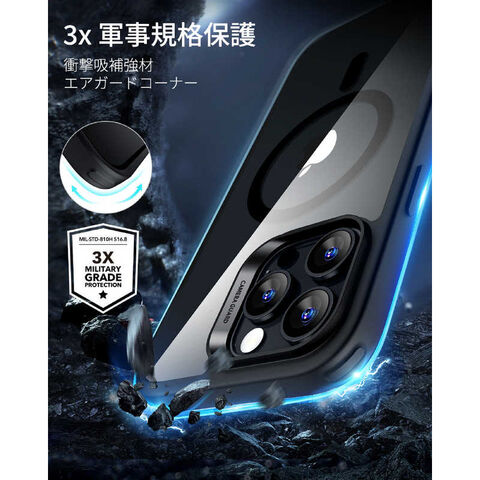ESR iPhone 16 Pro Max(6.9インチ)マグネット対応、ミリタリーグレードケース Clear Black Clear Black ESRClassicHybridCase-HaloLockiPhone16ProMax