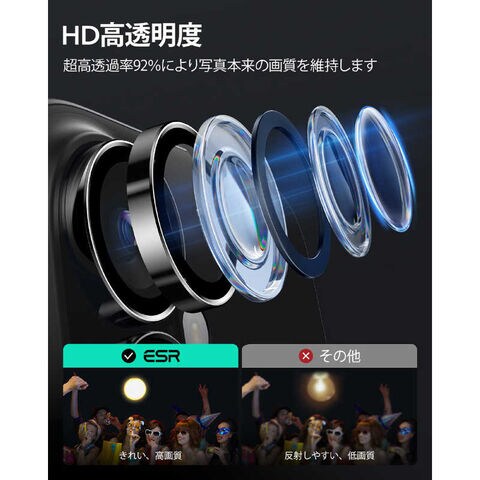 ESR iPhone 16/16 Plus 強化ガラスカメラレンズプロテクター Black ArmoriteCameraLensProtectorsforiPhone16/16Plus