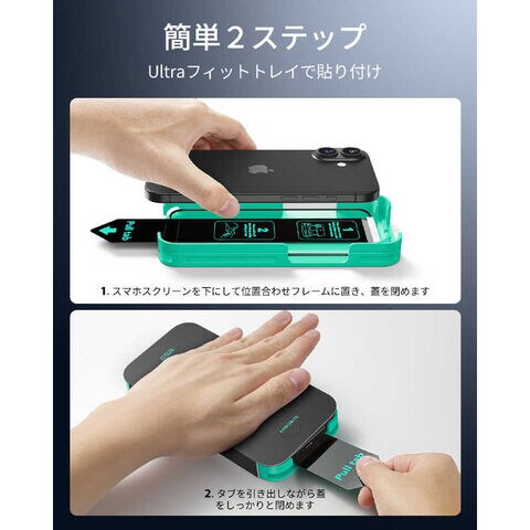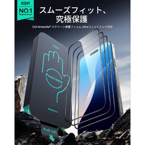ESR Armoriteスクリーン保護フィルム、フィットトレイ、クリーニングキット、マニュアル