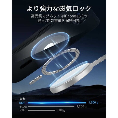 1,500gの保持力を持つ強力な内蔵マグネットは、より速く、より簡単な瞬間吸着ワイヤレス充電を可能にし、あらゆるMagSafeアクセサリーに安全なロックを提供します。