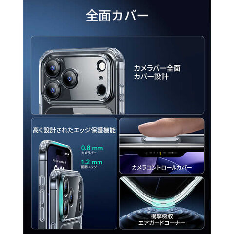 ESR iPhone 17 Pro (6.3インチ)MagSafe対応、ミリタリーグレードハードケース クリア 1A86300101-Clear