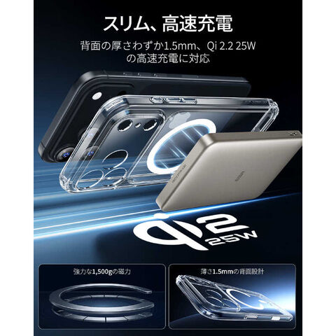 業界トップクラスの強力磁力(1500gの保持力)を内蔵した iPhoneケースです!MagSafeワイヤレス充電器やアクセサリーが瞬時に「ピタッ」と吸着するため、満員電車や急いでいる時でも位置調整の手間が不要です。
