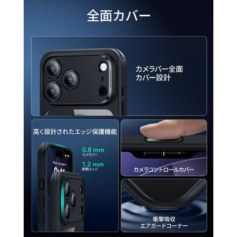 ESR iPhone 17 Pro Max (6.9インチ)MagSafe対応、ミリタリーグレードハードケース クリアブラック 1A86400301-Clear Black