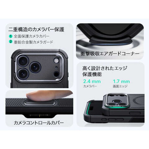 ESR iPhone 17 Pro Max (6.9インチ)MagSafe対応、隠れスタンド付き、3層構造衝撃吸収ハイブリッドケース ブラック 1A88200101-Black