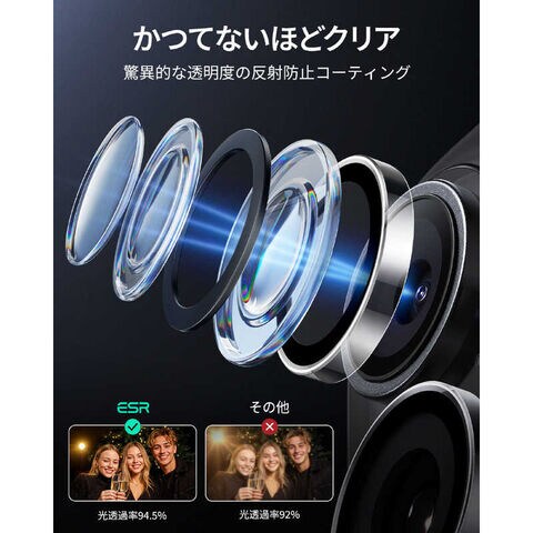 ESR iPhone 17/16/16 Plus (2眼)対応 ミリタリーグレード強化ガラスカメラレンズフィルム クリア 1D73100105-Clearのレビュー
