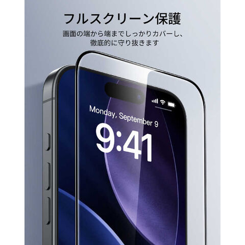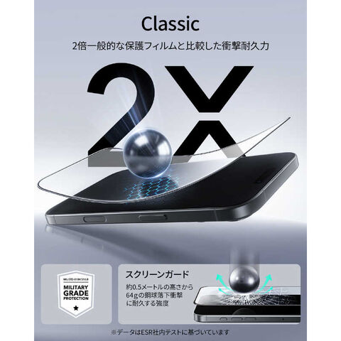 ESR iPhone 17 / 16Pro ガラスフィルム 2倍強度 UltraFit Classic フルスクリーン保護 光沢 2枚入り 1D87800202-2Pack