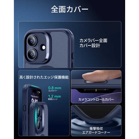 ESR iPhone 17 (6.3インチ)MagSafe対応、ミリタリーグレードハードケース フロストブルー 1A86100401-Frosted Blue