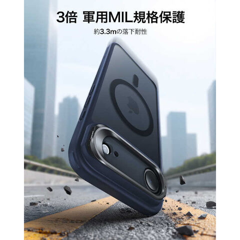 ESR iPhone Air (6.5インチ)MagSafe対応、隠れスタンド付き、ミリタリーグレードケース フロストブルー 1A86600401-Frosted Blue