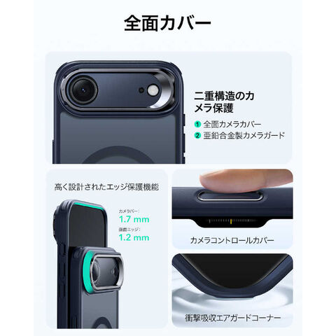 カメラレンズはスマホの命です!このiPhone17ケースはレンズ全体を覆うフルカバーと、丈夫な亜鉛合金製スタンドの二段構えで傷から徹底保護します。