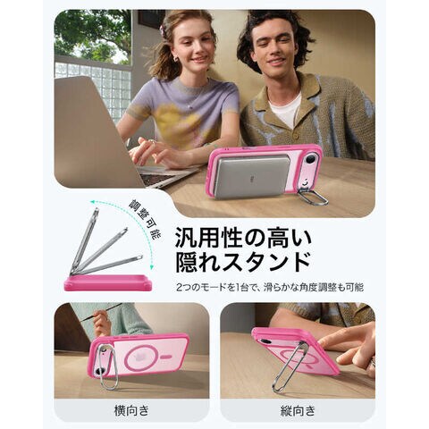 ESR iPhone Air (6.5インチ)MagSafe対応、隠れスタンド付き、ミリタリーグレードケース フロストピンク 1A86600501-Frosted Pink