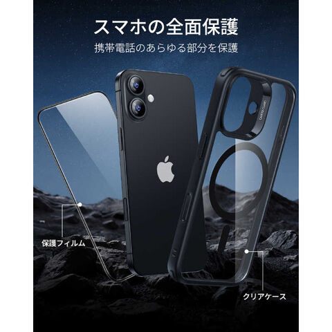 ESR iPhone 17 (6.3インチ)MagSafe対応、ミリタリーグレードハードケース+ガラスフィルムセット クリアブラック 1A88900201-ClearBlack