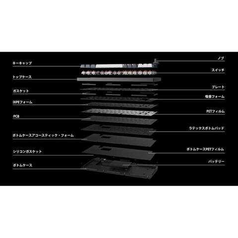 このダブルガスケット構造により、ガスケット構造の柔軟性を維持したまま、キーボード全体の打鍵音を良くすることができます。