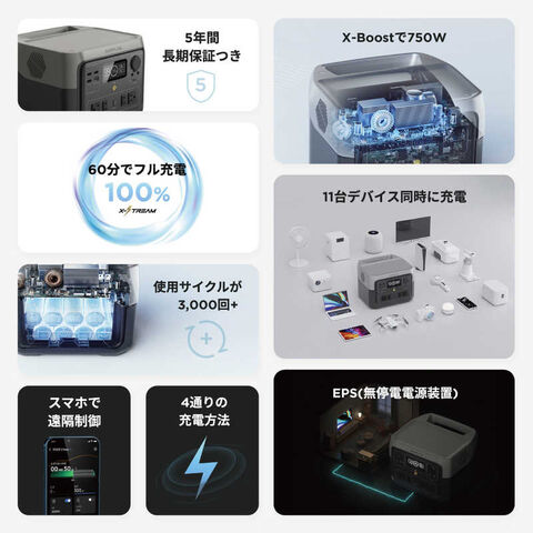 出力ポート:AC:100V~ 50/60HzUSB-A:5V/2.4A 各ポート最大12WUSB-C:5V/5A、9V/5A、12V/5A、15V/5A、20V/5A 最大100WDC:12.6V/10A、3A、3A 最大126W