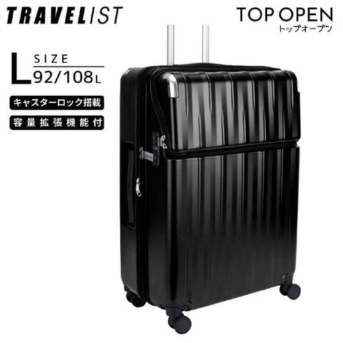 トラベリスト トップオープン 拡張機能付きスーツケース Lサイズ レスト [TSAロック搭載] マットブラック 76-25131