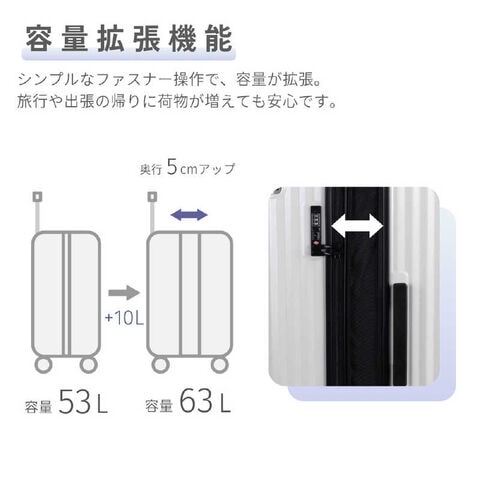 5cm拡張機能を備え、旅先で荷物が増えてもスムーズに対応。