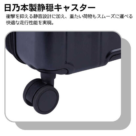 仕様:外寸:約770×445×360(410) mm総外寸:約830×465×375(425) mm内寸:約755×430×355(405) mm重量:約6.9 kg容量:約112 (128) L車輪:日乃本社製Lisofツインキャスター(直径約60mm/後輪ストッパー搭載)ハンドル:多段階調整可能(85 / 90 / 95 / 100 cm)TSAナンバーロック搭載素材:ABS+ポリカーボネートシェル