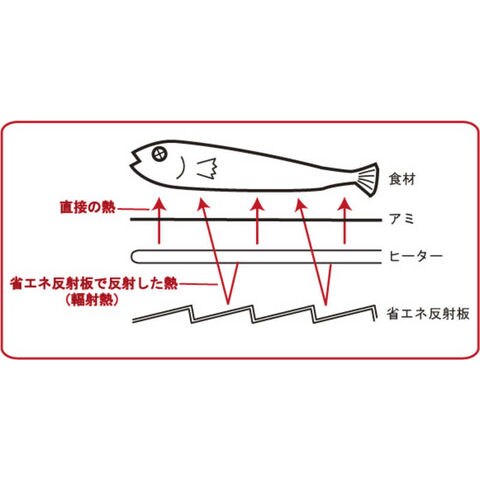 仕様1:材質:本体・反射板・網=鉄(フッ素樹脂加工)、受金具=ステンレス、ヒーター=分離式シーズヒーター、