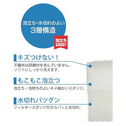 泡立ち・水切れのよい3層構造でスポンジ部分に抗菌加工が施されています。