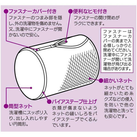 大きく開いて出し入れが簡単な筒形洗濯ネットです。